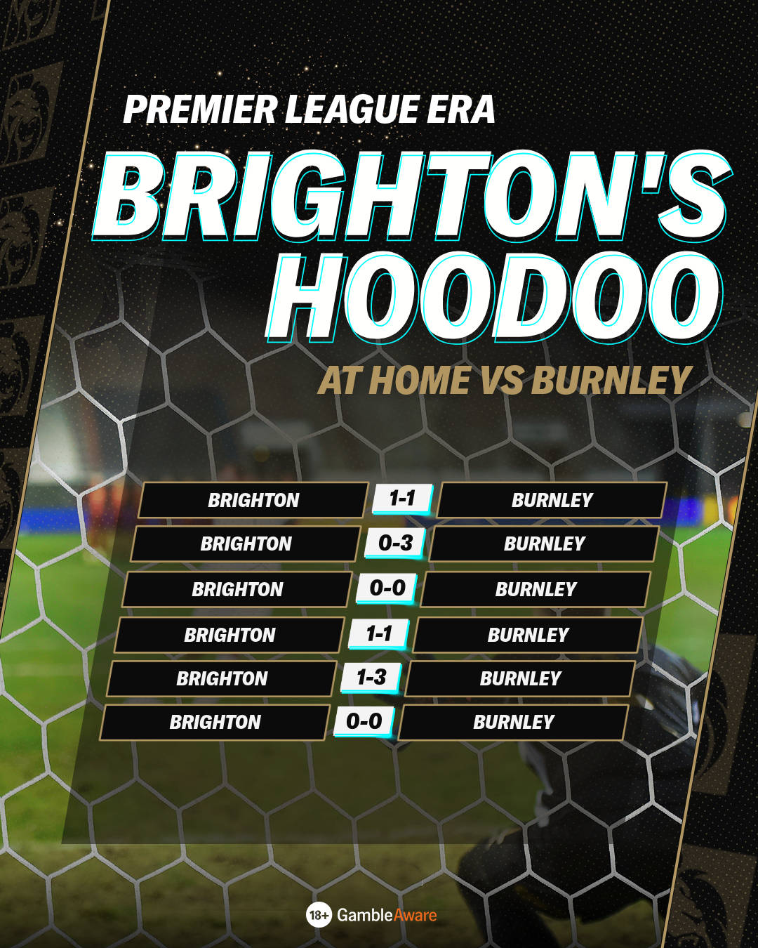 Some hoodoos are destined to be broken and Brighton’s winless Premier League home record against Burnley feels primed to fall on Golden Goals Matchday 20.